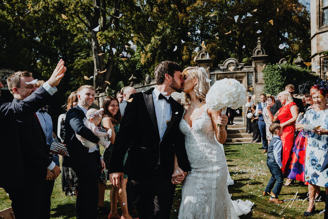 The ceremony took place in the Great Hall which looked amazing with elegant white flowers provided by the amazing Meadowsandmulberry. After the ceremony the guests moved onto the South Terraced Lawn, providing the perfect setting for the drink receptions and photographs. The grounds at Thornbridge are simply immense, with stunning views of the Derbyshire landscape, dense woodland and Italian Gardens. Perfect for the couple photos. The wedding breakfast was held in the bright and airey Carriage House where the party really got started, the worst part of the day was having to leave as it was an epic and unforgettable day.